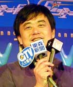 インタビューに答える陳昇。機嫌良さそう。 |