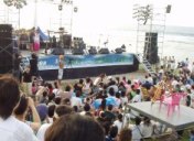 びーに舞台から蹴落とされていましたが(笑) 阿VONが一人でギター もってうたった「ナルワンの歌(?)」会場 のみんな歌えていて、私達日本人だけぽか〜んとするしかなく残念。 ゲストは、手下の「プチ ナース」の他、阿ゆぃーしかいなかったけど その分、身内で固めた感じで、まとまりもよく楽しかったです。ビーサンももらったし。初めてボビーとはぐはぐしたし(キャー)。」 |