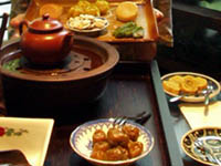 (帰国後、雑誌を見てたらこの茶芸館載っていました。有名店だったのかな?)「東方美人」という高めのお茶を頼む。香りの良いお茶でした。心なしかバラの香りがしたような・・・午後の時間はお菓子がサービスとのことで、お皿に盛られたいろんな種類のお菓子を楽しめました。特に「緑豆羔」がおいしかった!