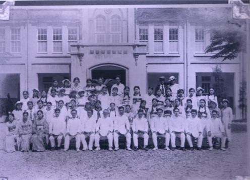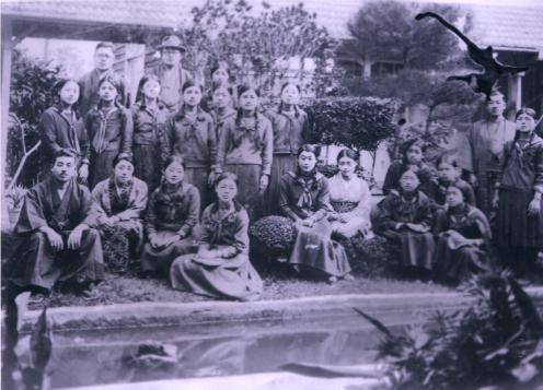 約束どおり、取り壊される前のあの校舎の写真でした。さらに私がたどたどしく「祖母は第一期生です」と話しておいたのが通じていたのか、第一期生の写真も数葉入っていました。もちろん祖母が写っていました。