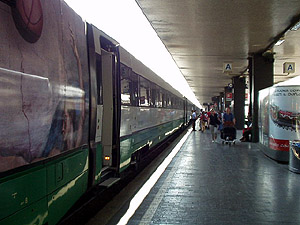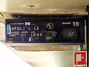 ナポリ中央駅の荷物預かり(12時間3ユーロ)に大きな荷物を預けて貴重品と帽子、水だけ持って出かけました。どうやっていくのかな〜?ト思ったとき、ガイドブックを荷物に入れたまま預けてしまった事に気がつきました。あちゃちゃ。仕方がないので、インフォメーション(長蛇の列)で行き方をたずねることに。
