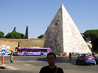 ピラミデ駅前。本当にピラミッドがありました。中はどうなってるのかな???ここから「ローマ−リド線」に乗って、オスティアアンティカ遺跡を目指します。 |