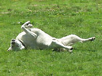 遺跡には犬が住んでいますね。かゆいところでもあるのかな?変なポーズとってお客さんを喜ばせていました。 |