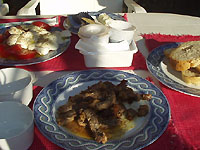 朝食はお決まりのテラスで。今日はステーキだ。朝から・・・・う。 |
