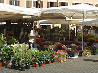 歩いてカンポデフィオーリ広場へ。いろんな物を売っていますが、もともと花市だったそうで、お花屋さんも。 |