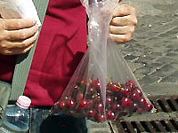 さくらんぼを買いました。旅行者だからか、店のお兄さんが「そこの水道で洗って食べられるよ」と教えてくれました。 |