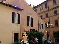 トラステヴェレに戻って、「レストランロモロ」の前で。ここはラファエロの恋人の住んでいた家なのだそうです。 |