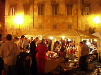 土曜の夜だったからか、サンタマリアイントラステヴェレの広場には出店やバンドのステージが組まれていて、深夜過ぎまでにぎやかでした。 |