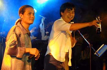 演奏は、いつもと変わらず、いい感じで進んでいきました。アカペラの次は「恨情歌」。会場にばっと飛び出す「紅色気球」もうここで、陳昇は汗びっしょり。JAZZにアレンジされた「然而」などなど。