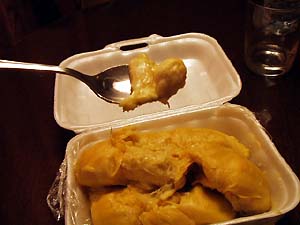 3日目:ホテル近くのフードコートでお粥の朝食→タンジョンパガーあたりを散策→ホテルに戻ってお茶→昨日会った人と待ち合わせしてアラブストリートでカレーを食べる→泥棒市場→ブギスビレッジで潮州もののCDを買う→歴史博物館(ここまで案内してもらいました。いやいや、ありがたいことです)→一人になってチャイムスへ。バーでビールを飲みつつぼ〜っとする→ほろ酔い(でも外は明るい)でウィンドーショッピングへ→ラッフルズシティーのトイレに貼ってあったエステのポスターを見て「あっ」と思いつき、そのまま予約を入れに行く→ネットカフェ→「文東記」でチキンライス食べようと思ったが場所がわからず、夜の街をうろうろしただけで何も食べず→最後の夜なのでいろいろ歩きまわった。夜景がキレイ→ホテル近くのスーパーの前でドリアンを購入、こっそりホテルに持ち帰る。→ドリアンが晩ご飯となる。