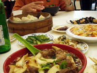 「七張」駅でみんなと落ち合い、雨の中タクシーでお店まで(またもや5人乗り)。おいしかった。