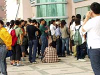 コンサートは指定席なのだけど、一番はじめにサイン会で購入した人の席は自由席なのだ。(つまり早い者勝ち)早くから並んでいたのはレネの私設ファンクラブ「小漁村」の面々。陳昇のコンサートなどでも顔を見る人もいる。彼らは段ボールいっぱいに入ってた蛍光棒を来た人に配っていた。私ももらいました。ありがとう〜。
