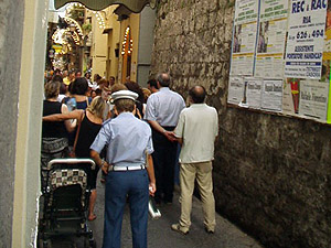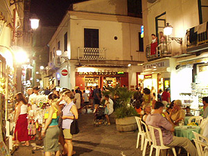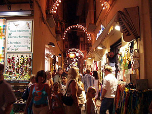 すごい人です。写真の通りは細い道の両側におみやげ物やさんが並んでいます。そこに、昼間はいろんなところを観光していた、あるいはビーチでのんびりしていた観光客がいっせいに繰り出して、お祭り騒ぎです。