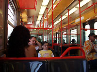 「ローマ−リド線」内部。色使いがおもしろいですね。 |