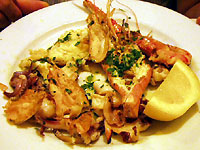 このお店は、ガイドブックによると海鮮が美味しいらしい。隣の人が食べてたピザも美味しそうだったけど・・。 |