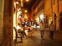 土曜の夜だったからか、サンタマリアイントラステヴェレの広場には出店やバンドのステージが組まれていて、深夜過ぎまでにぎやかでした。 |