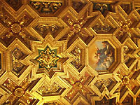 サンタマリアイントラステヴェレ教会へ。豪華な天井。 |