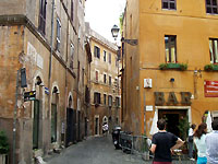 トラステヴェレに戻って、「レストランロモロ」の前で。ここはラファエロの恋人の住んでいた家なのだそうです。 |